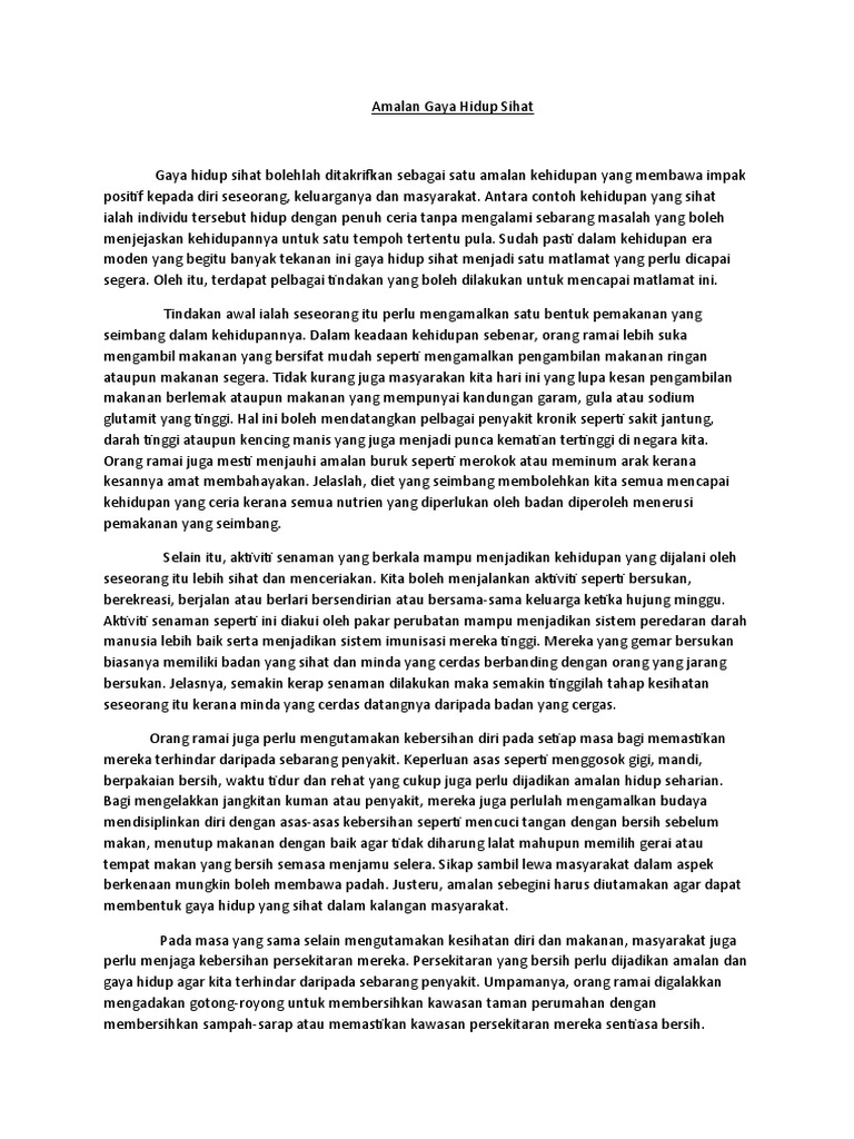 Contoh Karangan Amalan Gaya Hidup Sihat Pdf