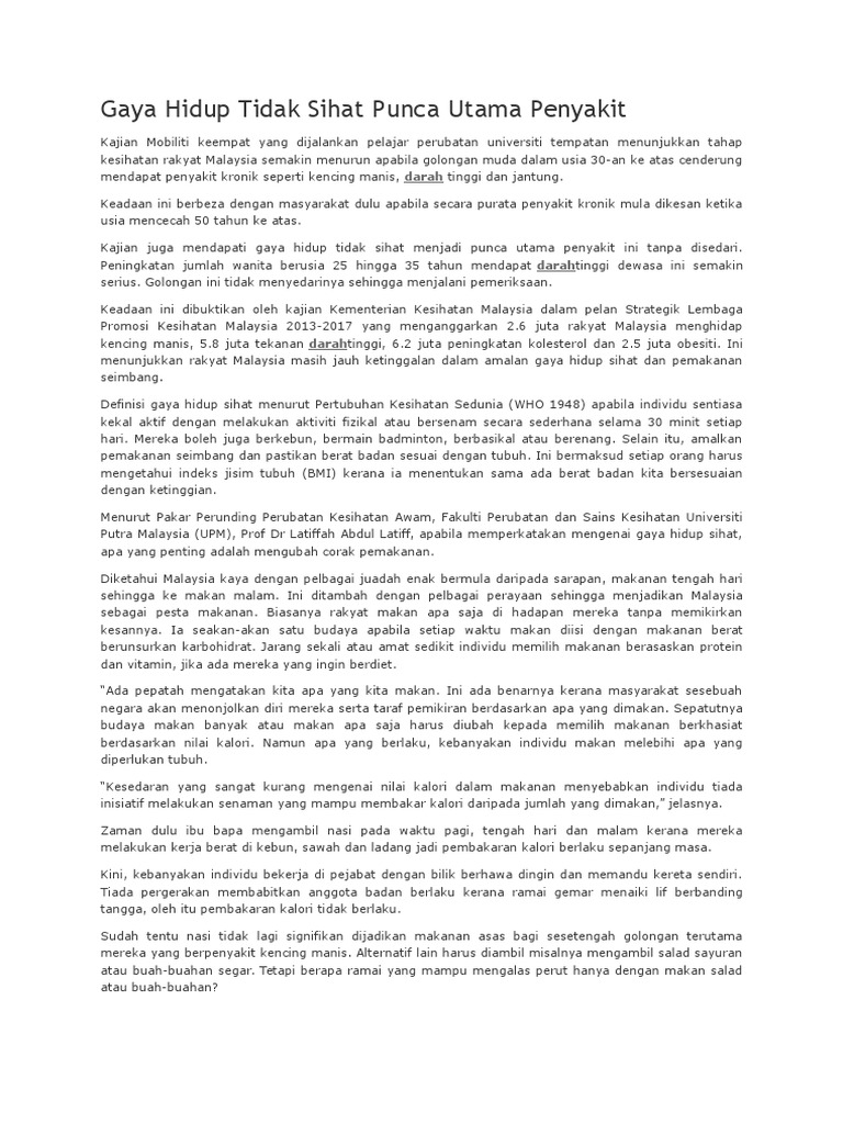 Gaya Hidup Tidak Sihat Punca Utama Penyakit Pdf
